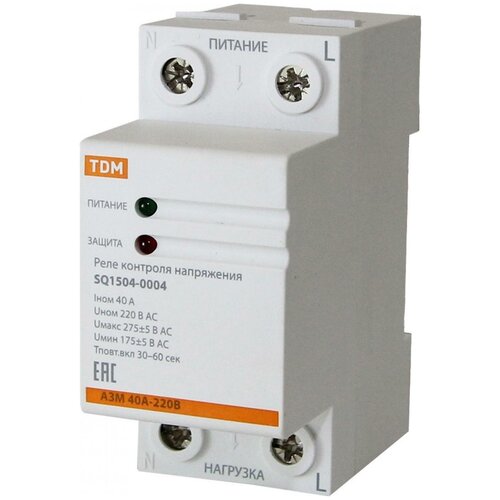 Реле контроля напряжения TDM Electric АЗМ 40А-220В однофазное с нерегулируемыми порогами