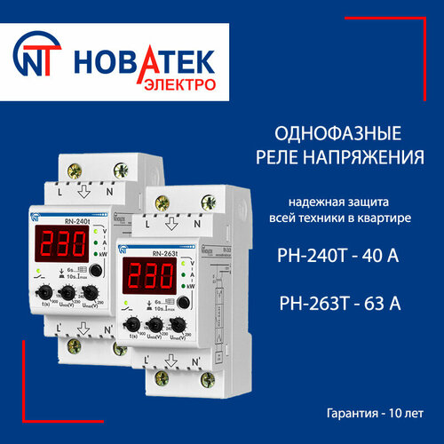 Однофазное реле напряжения РН-25t 25А Новатек-Электро