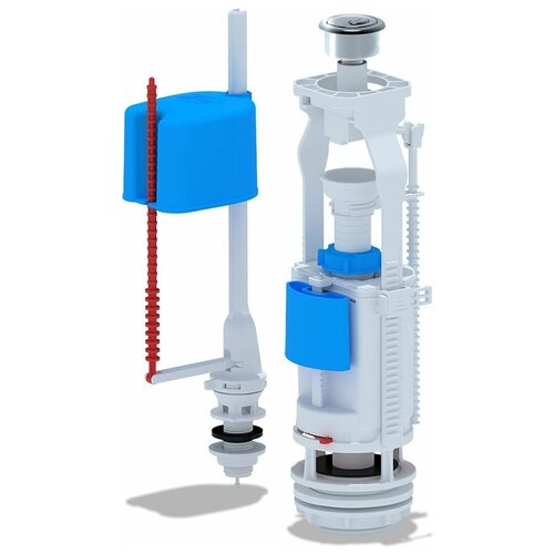 Комплект арматуры АНИ Пласт с нижней подводкой 1/2" латунь резьба (кнопка хром), набор для бачка унитаза, наливной механизм