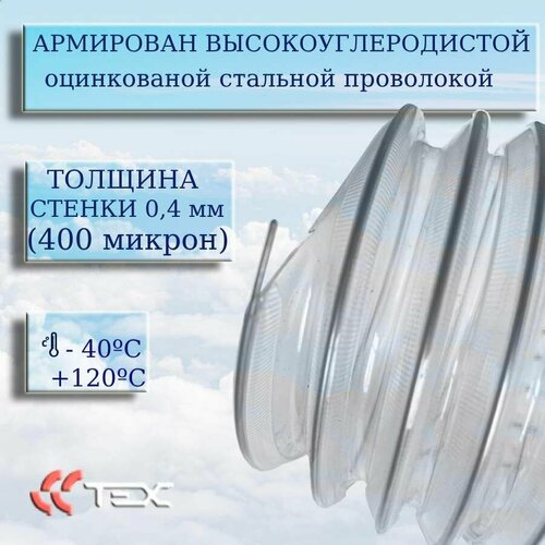 Полиуретановый гибкий воздуховод PU-400-110/3 армированный прозрачный шланг диаметр 110 мм, длина 3 метра. Гибкая гофра для аспирации и стружкоотсоса