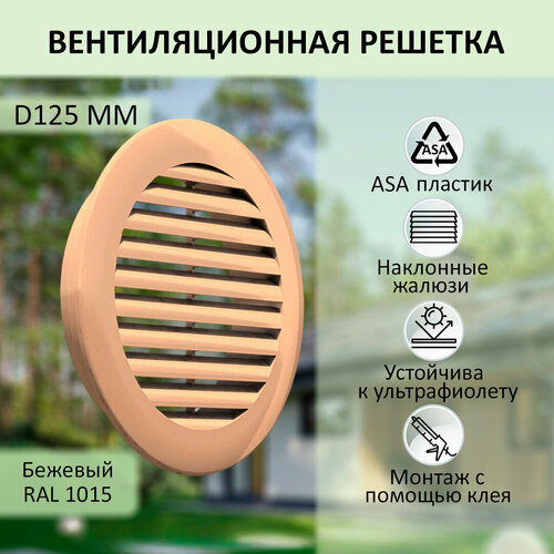 Решетка вентиляционная NOVAplast наружная круглая D125мм, ASA пластик, бежевая