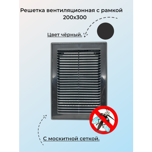 Вентиляционная решётка ВИЕНТО, с москитной сеткой, пластик, 20x30 см, черная