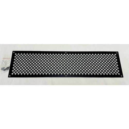 Решетка плоская оцинкованная, габарит 600х150мм, перфорация Цветок 10мм, цвет Черный матовый
