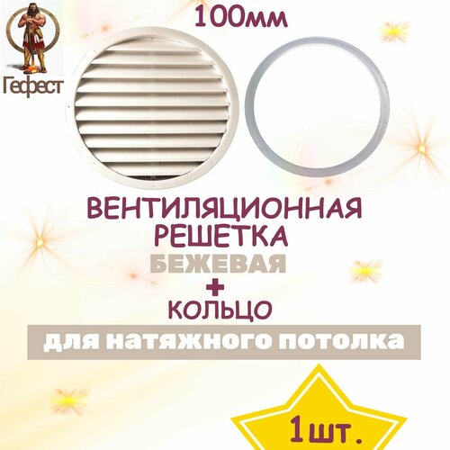 Решетка вентиляционная D100мм белая (1шт.) для натяжного потолка, круглая, в ванную, кухню, туалет или комнату