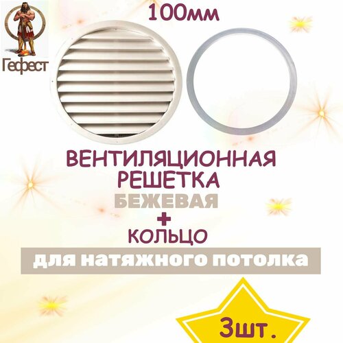 Решетка вентиляционная для натяжного потолка D100мм - 3шт. Цвет.