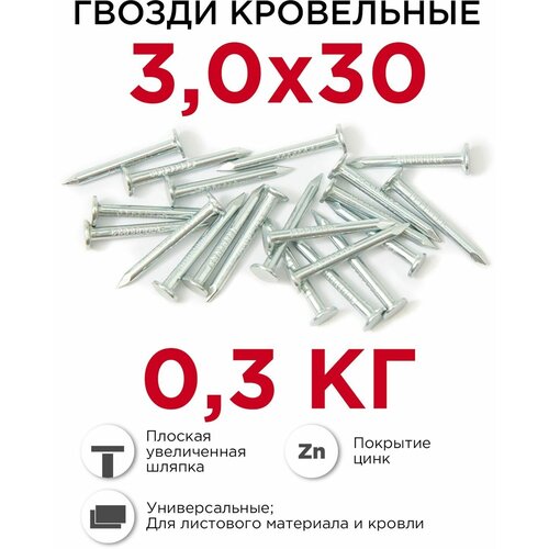 Гвозди кровельные (толевые) Профикреп оцинкованные 3 х 30 мм, 0,3 кг