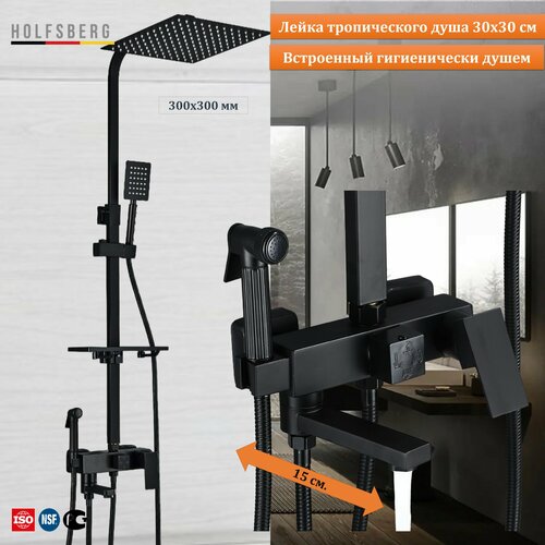 Душевая система с тропическим душем черная HOLFSBERG A30 BL-2 4в1 с гигиеническим душем
