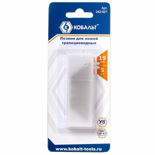 Лезвия сменные для ножей кобальт 19 мм, трапециевидные, сталь У8 (5 шт.)