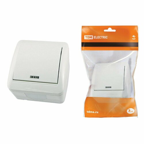 TDM Розетки, выключатели SQ1818-0003 Выключатель 1-кл. открытой установки с подсветкой IP44 10А белый "Селигер"