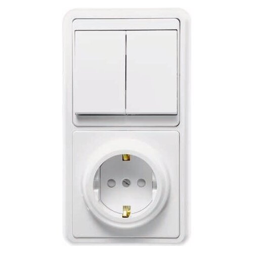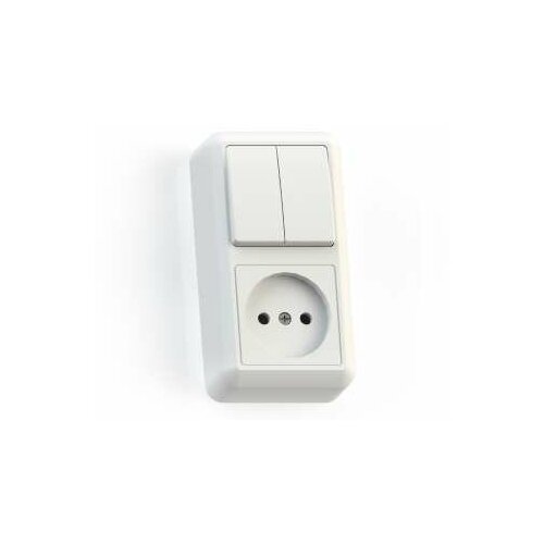 8067 Блок открытой установки Кунцево-Электро БКВР-433 Оптима белый, выключатель 2-клавишный с подсветкой, розетка 1-местная с заземлением