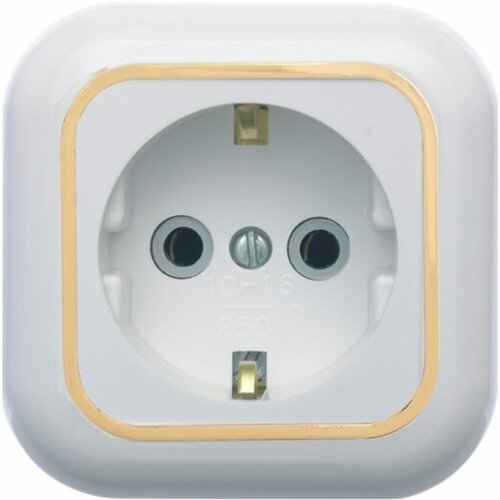Кунцево-Электро Розетка 1-м ОП Валентина РА16-638 с заземл. бел./зол. Кунцево 7641