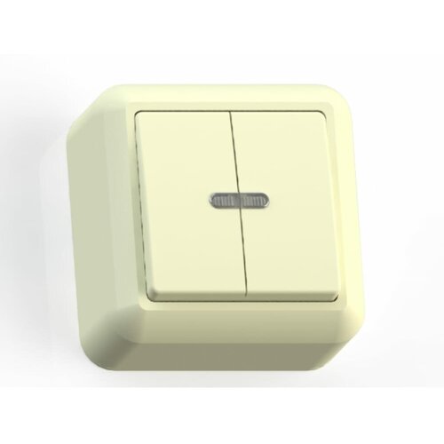 Выключатель Кунцево-Электро оптима открытой установки двухклавишный с подсветкой, 10А А510-387 с/к 8034
