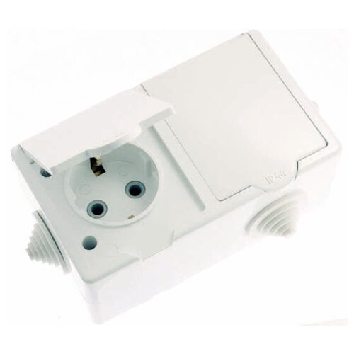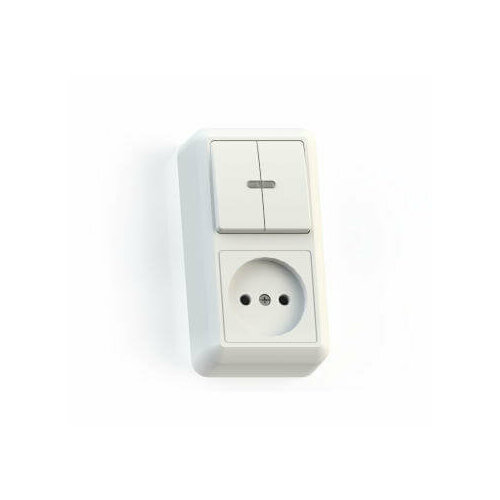 8061 Блок открытой установки Кунцево-Электро БКВР-430 Оптима белый, выключатель 1-клавишный с подсветкой, розетка 1-местная без заземления