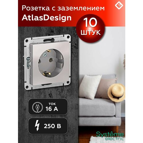 Розетка Systeme Electric ATN00XX32 GLOSSA, 16 А, с защитной шторкой, с заземлением
