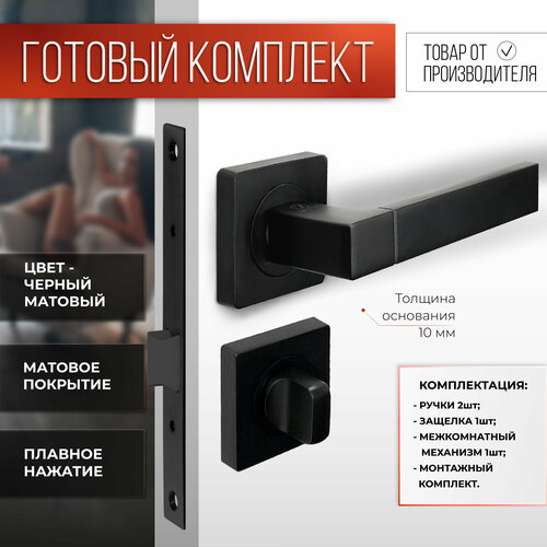 Ручка дверная VETTORE R06.081 MBP с фиксатором BK 0605 MBP и межкомнатным механизмом WC 170 kevlar MBP Черный матовый