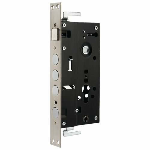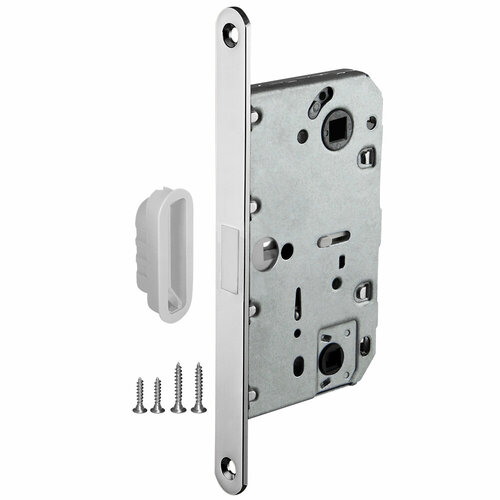 Замок под цилиндр врезной межкомнатный Vantage P85SC, с пластиковым язычком, межосевое расстояние 85 мм, матовый хром