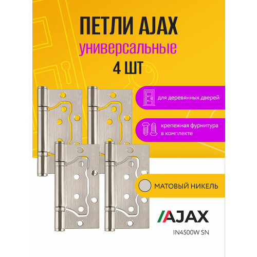 Петли дверные AJAX, универсальные, накладные, матовые, цвет никель, 4 шт