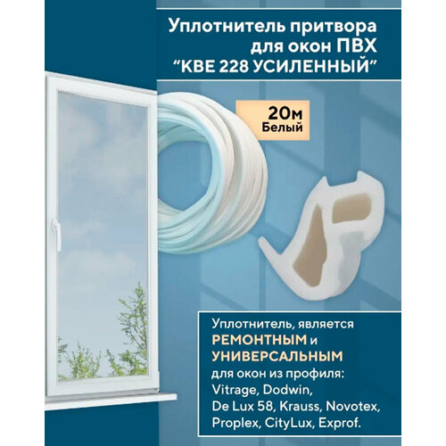 Уплотнитель 228 универсальный для окон ПВХ (ТЭП), длина 20 м, цвет белый