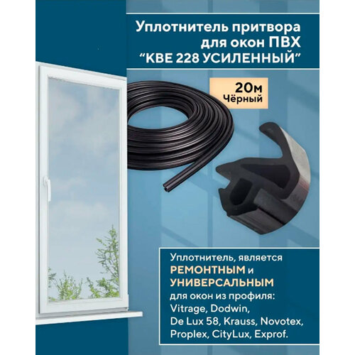 Уплотнитель 228 универсальный для окон ПВХ (ТЭП), длина 20 м, цвет черный