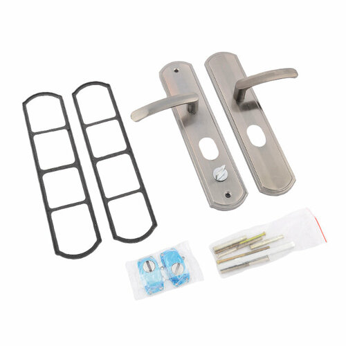 * универсальнаяальная(перевернуть механизм защелки, чтобы язычок был направлен в сторону закрывания двери)* материал корпуса, розеток: сталь; * материал ручек: алюминий* покрытие: гальваническое* материал цилиндрового механизма: латунь* регулируемое расстояние от торца двери 60-70мм* подходят к дверям с толщиной полотна 30-45мм* скрытые установочные винты* индивидуальная упаковка: блистер