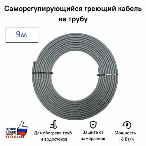 Саморегулирующийся греющий кабель на трубу СТН 9 м 144 Вт, на отрез