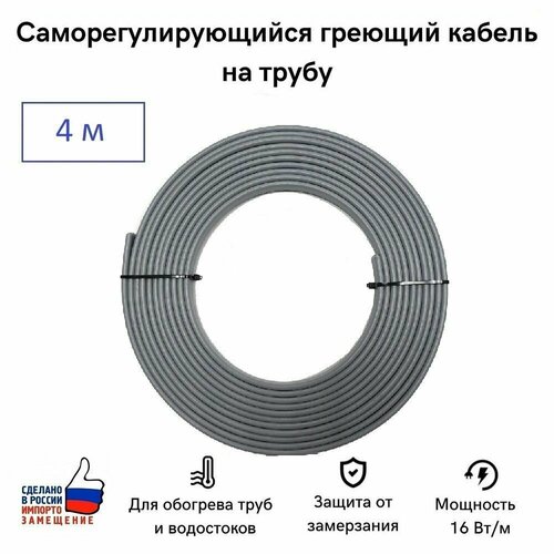 Саморегулирующийся греющий кабель на трубу СТН 4 м 64 Вт, на отрез