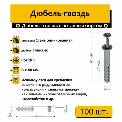 Дюбель-гвоздь "Нико" 6х40мм 100 шт.