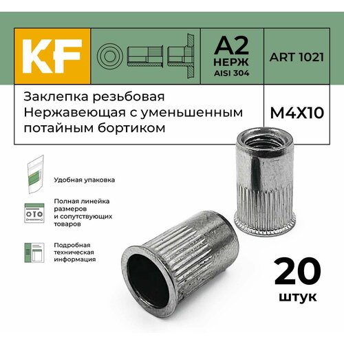 Заклепка резьбовая Нержавеющая с уменьшенным потайным бортиком М4Х10 ART 1021 А2 20 шт.