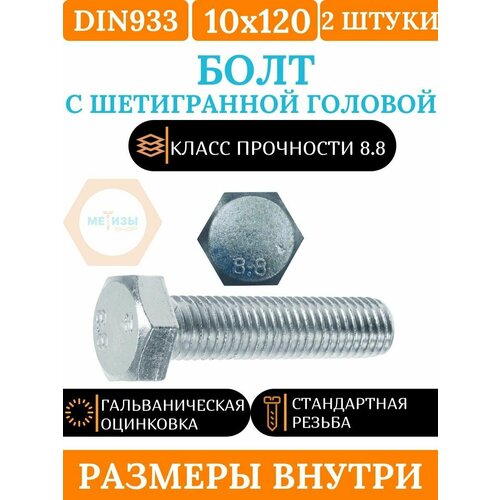DIN933 10х120 болт оцинкованный, кл. пр. 8.8, 2 шт.