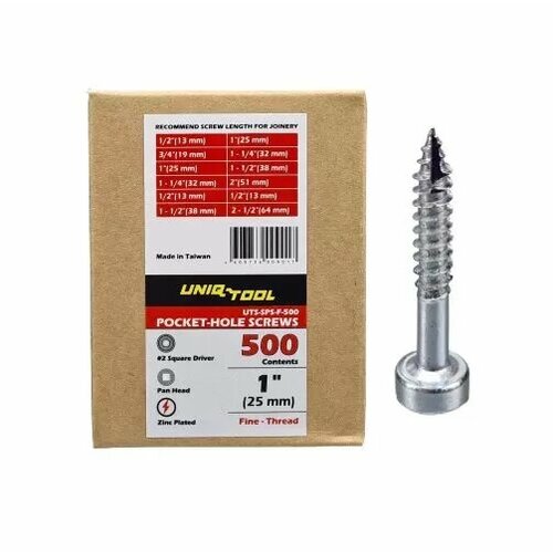 Саморезы UT оцинков. PAN-Head 1"(25мм) (шаг 1мм) упак. 500шт. Uniqtool UTS-SPS-F-500