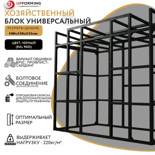 Сборно-разборный хозблок / Бытовка из оцинкованной стали/хозблок металлический RAL 9005 100х150х245 см