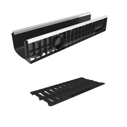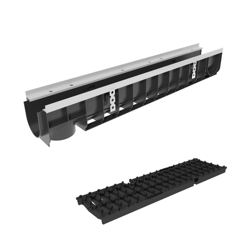 Комплект лотка пластикового с полиамидной решеткой Gidrolica Pro, H=117мм, кл. С250