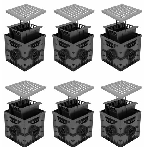 Комплект Дождеприемник Gidrolica Point 300х300х300мм со стальной оцинкованной решеткой перегородками и корзиной, 6 штук