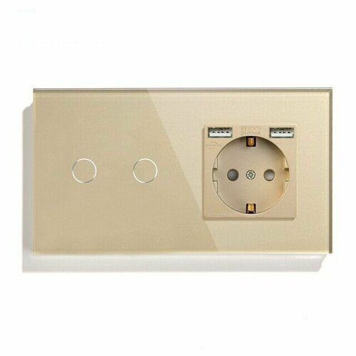 Сенсорный выключатель с розеткой 2кл. 1 розетка, 2 поста (2G+1AA) стекло 157х86мм цвет золотой
