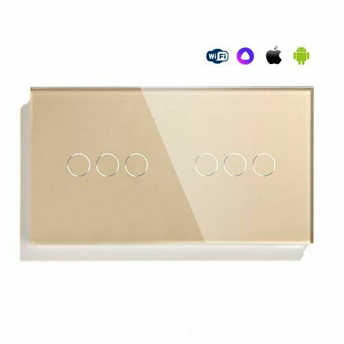 Сенсорный выключатель WiFi 6 клавиш 2 поста (3G+3G) стекло 157х86мм цвет золотой