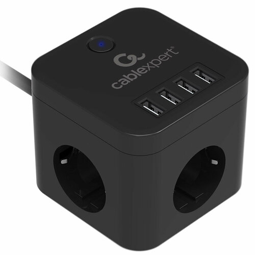 Сетевой фильтр Gembird Cablexpert Cube 3 Sockets 4хUSB 1.5m Black CUBE-3-U4-B-1.5
