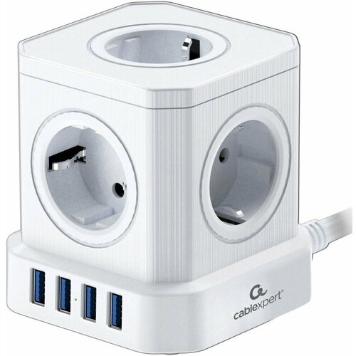 Сетевой фильтр Cablexpert Cube CUBE-4-U4-W, 4 р, 16А, 4хUSB, ур. защиты 2+, коробка