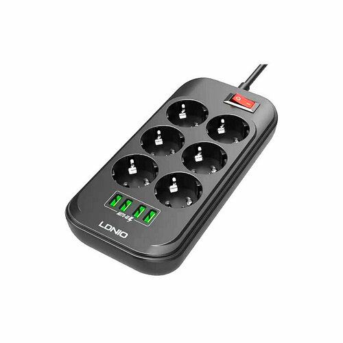 сетевой удлинитель Ldnio SC5415 на 5 розеток и 4 USB порта с защитой от перегрузки, короткого замыкания и перегрева.
