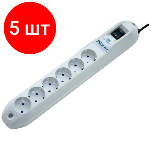 Комплект 5 штук, Сетевой фильтр PILOT-GL (6/7м/10А/1180Дж/белый)