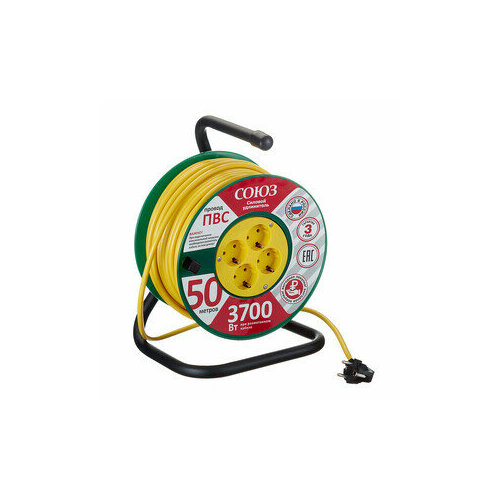 Удлинитель силовой на катушке Союз (481S-3605) с заземлением 50 м 16 А 220-250 В 3,7 кВт 4 розетки ПВС 3х1,5 мм2 IP20