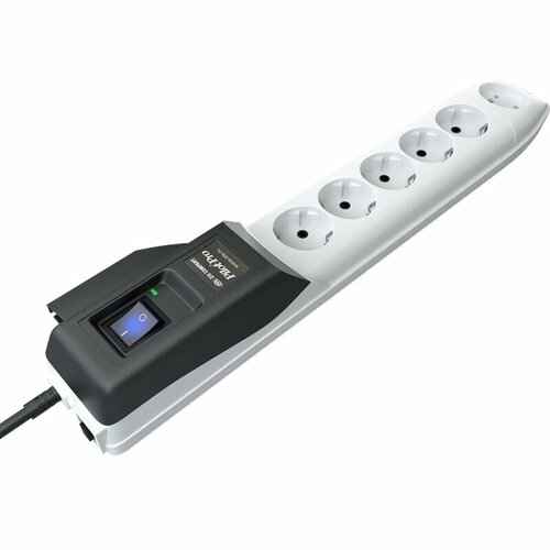 Сетевой фильтр Pilot L, 6 розеток, с/з, 10А / 2200 Вт 6 5 м 0.75 кв. мм 385 мм 70 мм 50 мм