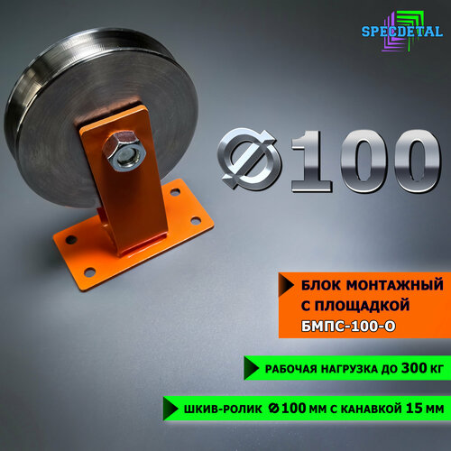 Блок монтажный ф100 окрашенный с площадкой спецдеталь шкив-ролик с подшипником и канавкой для троса