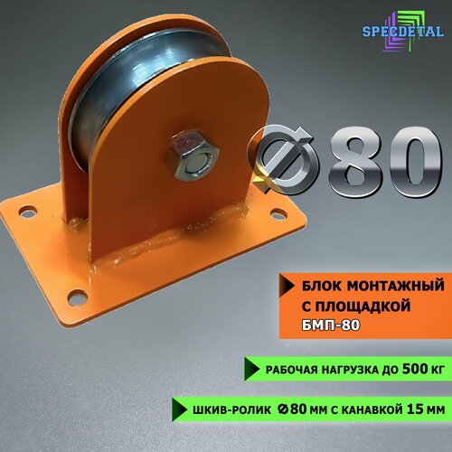 Блок монтажный с площадкой спецдеталь ролик металлический под трос 80х15 мм с подшипником на платформе