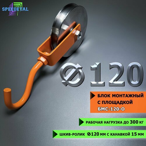 Блок монтажный с площадкой спецдеталь ролик металлический под трос 120х15 мм с подшипником на площадке