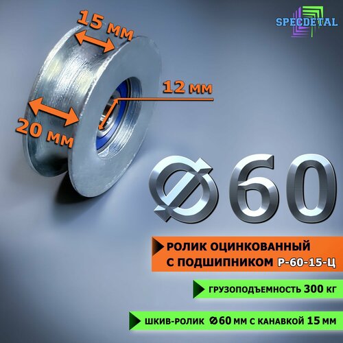 Шкив-ролик для троса спецдеталь оцинкованный Ф60 мм, под трос 15 мм