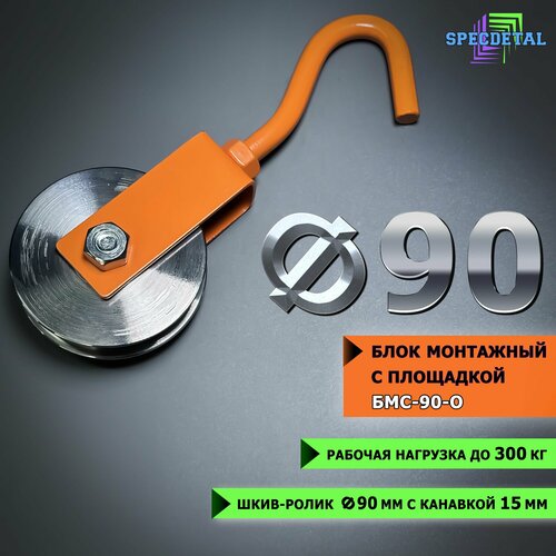 Блок монтажный ф90 окрашенный с площадкой спецдеталь шкив-ролик с подшипником и канавкой для троса