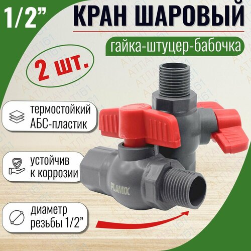 Кран шаровый 1/2" бабочка гайка/штуцер из термостойкого АБС пластика(2шт в комплекте)