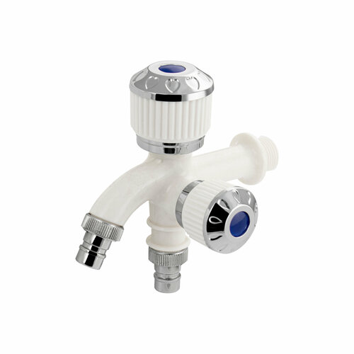 Кран водоразборный 1/2 из пластика АБС с двойным выходом, ручка вентиль , BRIMIX 5894