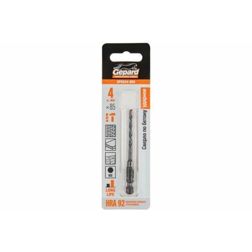 Сверло твердосплавное спиральное по бетону 4x85 мм, HRA 92 Gepard GP0224-850