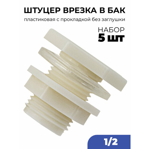 Штуцер врезка в бак 1/2, с прокладкой без заглушки, пластик, 5шт